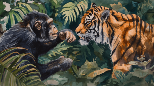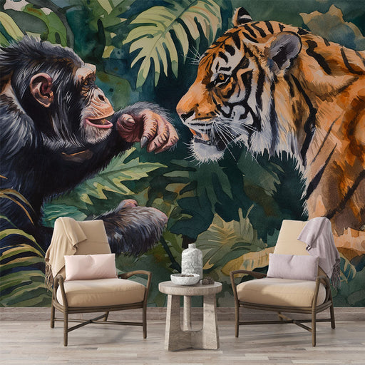 View full detailsMural Wallpaper tiger and chimpanzee | Dialogue in the jungle