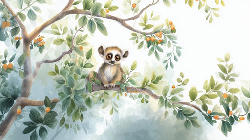Art'loloBring a touch of nature and softness to your room with our animal-themed wallpaper representing a charming lemur nestled in the middle of the canop...