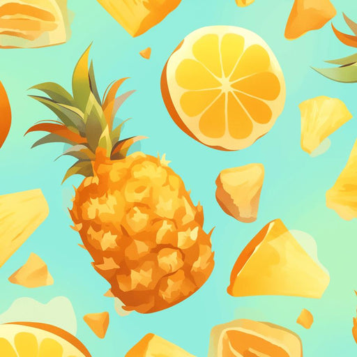 This vibrant wallpaper features beautiful pineapples and orange slices on a light yellow background. The bright colors and tropical patterns bring ...
