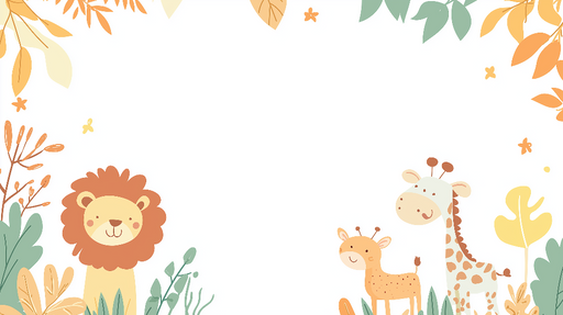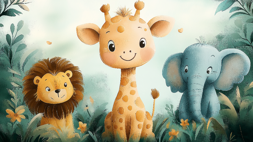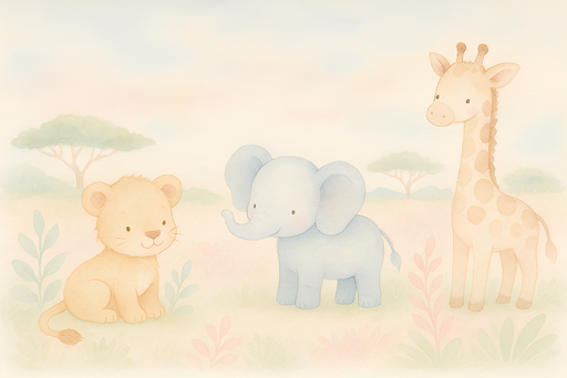 WonderMuralThis enchanting mural wallpaper features a lovely motif of cute animals including a lion, an elephant, and a giraffe, all depicted in delicate past...
