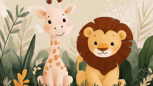 WonderMuralThis playful mural wallpaper features an adorable giraffe and a friendly lion, illustrated in a soft artistic style. Their joyful expressions add a...