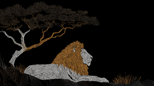 WonderMuralOur superb mural wallpaper showcases a majestic lion peacefully resting, surrounded by delicate vegetation. Drawn with fine and elegant lines, ever...