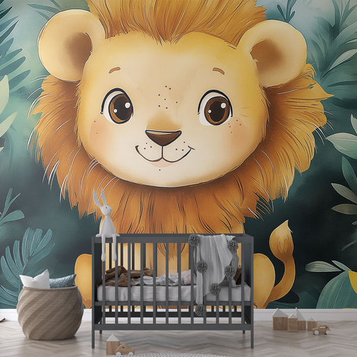 WonderMuralThis mural wallpaper features an adorable lion with a playful design, perfect for children's rooms. With its friendly smile and original mane, this...