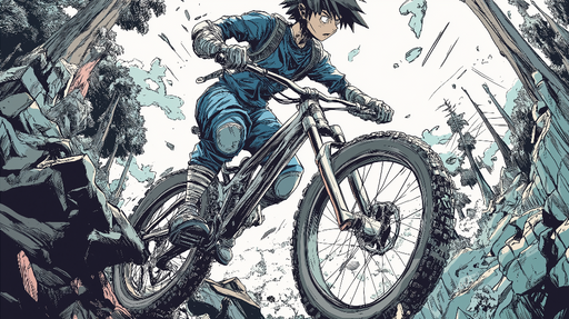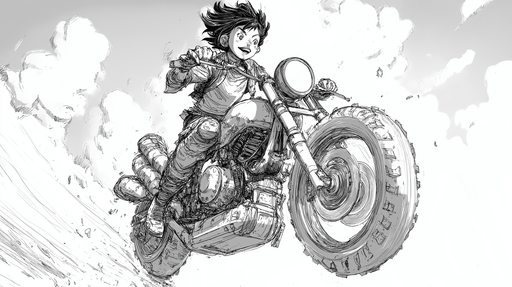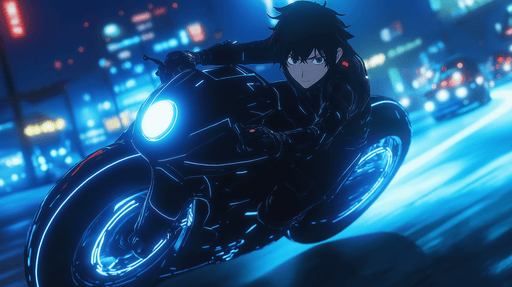 View full detailsMural Wallpaper manga motorcycle | A young rider at full speed on a stylized motorcycle