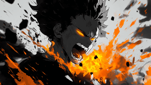 WonderMuralOur mural wallpaper features a dynamic manga character with a frightened face, blazing eyes, and bursts of fire around him, creating an intense and...
