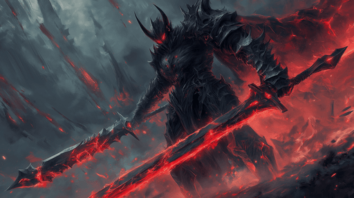 WonderMuralThis captivating mural wallpaper depicts a powerful dark warrior, armed with a flaming sword that seems to radiate heat and menace. The shades of b...