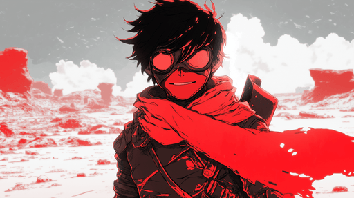 View full detailsMural Wallpaper manga | Enigmatic hero in a red and black landscape