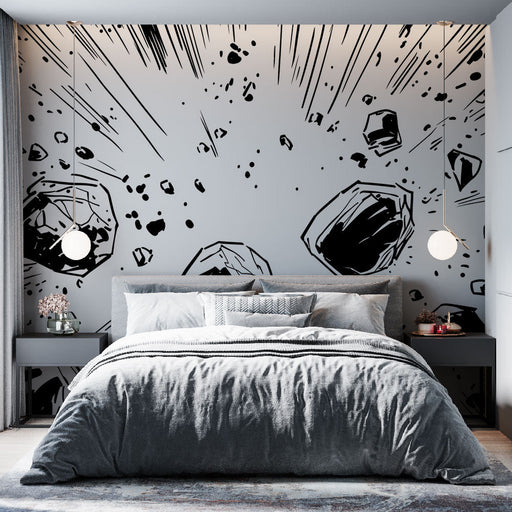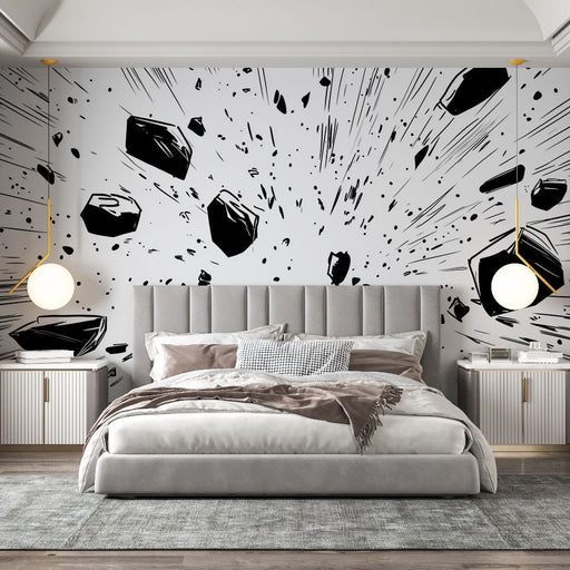 WonderMuralThis mural wallpaper features a bold design that evokes an explosion of energy through a dynamic pattern of projected rocks. The black and white il...