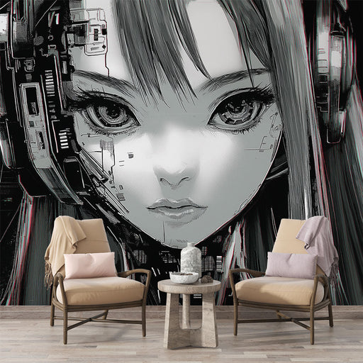 View full detailsMural Wallpaper manga | Futuristic portrait with technological influence