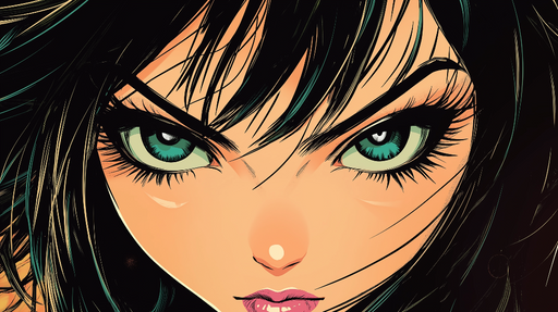 WonderMuralThis captivating mural wallpaper features a portrait of a woman in a vibrant manga style, with striking details. The turquoise eyes and dark hair c...