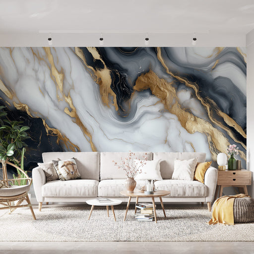 Art'loloTransform your space with our marble mural wallpaper that skillfully combines black, white, and gold tones. This elegant and sophisticated design e...
