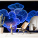 Discover our mural wallpaper with a captivating pattern of illuminated jellyfish in vibrant blue hues. These marine creatures, painted with a luminous effect, seem to gently float on a black background, creating a mysterious and soothing ambiance. The delicate details and shades of blue add a modern and artistic touch to your interior decoration.