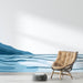 This mural wallpaper features a modern seascape with shades of blue ranging from turquoise to navy blue, creating a peaceful and inspiring atmosphere in any room. The wavy shapes of the water add a touch of dynamism while evoking the tranquility of a vast and open ocean.