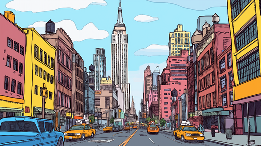 View full detailsMural Wallpaper New York | Colorful illustration of an iconic street in Manhattan