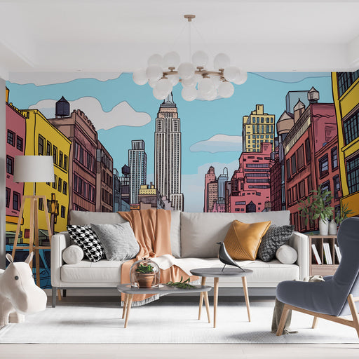 WonderMuralOur wallpaper features a stylized representation of the iconic New York skyscrapers, showcasing the Empire State Building in an artistic setting. T...