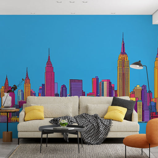Art'loloAdd vibrancy to your space with our Mural Wallpaper Skyline New York, illustrating the city's famous urban silhouette with splashes of vibrant colo...