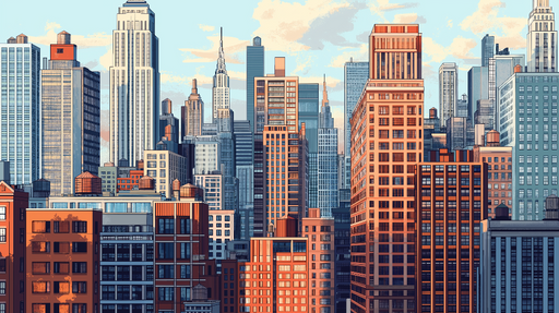 WonderMuralOur wallpaper represents a beautiful scene of the New York skyline, showcasing majestic skyscrapers in various shades of beige, brown, and white. T...