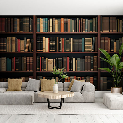 For a harmonious look, pair this mural wallpaper with neutral colors like beige, light gray, or natural tones that will highlight the elegance of the shelves. You can also add wooden accessories to accentuate the warm spirit of the decoration.