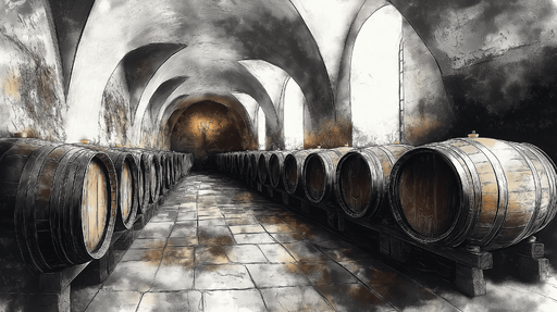 The natural tones of the barrels and walls create an earthy color palette that brings warmth and sophistication. This pattern pairs perfectly with decoration styles such as rustic, vintage, or Mediterranean, transforming any room into a true haven of peace.