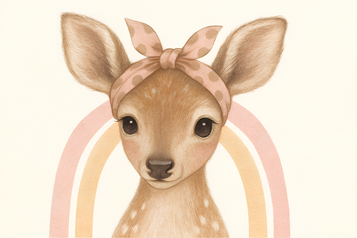 WonderMuralThis wallpaper features an adorable fawn with a charming polka dot headband, creating a soft and joyful atmosphere. The pastel shades of the illust...