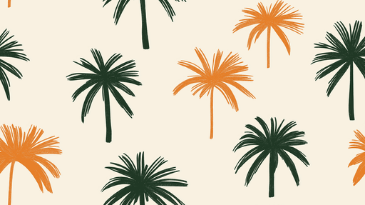 WonderMuralThis mural wallpaper features a playful pattern of stylized palm trees in shades of orange and green, creating an exotic and warm atmosphere. The l...
