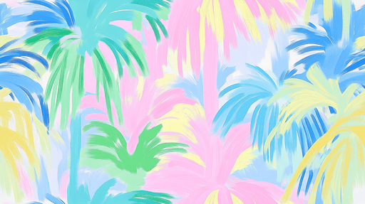 WonderMuralOur mural wallpaper features a playful pattern of colorful palm trees, painted with dynamic brushstrokes in soft pastel shades. Colors such as pink...