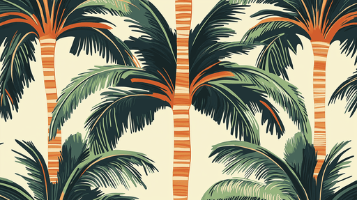 View full detailsMural Wallpaper palm trees | Vibrant pattern of green and orange palm trees on a light background
