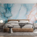 This mural wallpaper evokes modern elegance with a magnificent pattern of abstract marble in shades of blue and pink, enhanced by delicate golden veins. The soft hues create a soothing atmosphere while adding a touch of luxury to your space.