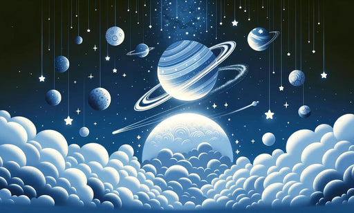 The deep colors of space - cosmos blues, galactic purples, blacks sprinkled with stars - add depth and sophistication to your rooms. Whether you opt for a complete panorama of the solar system or for more abstract motifs inspired by Saturn's rings, each design from our collection brings a touch of celestial magic to your interior.