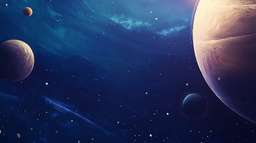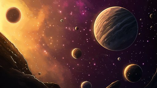 WonderMuralOur mural wallpaper features a stylized universe with planets in vibrant shades, highlighting golden, blue, and white hues on a dark background. Th...