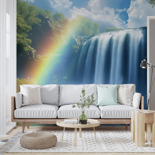 LuciDesignThis Rainbow Wallpaper is a true poetic fresco, where a vibrant rainbow gracefully unfolds behind floating clouds, on a background of azure sky pun...