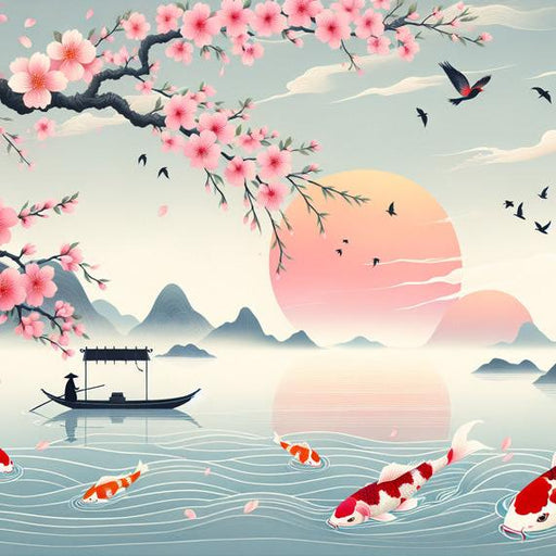 - Cultural fusion: Mural wallpapers blending sakura motifs with other elements of Japanese culture (waves, mountains, cranes) for a richer ambiance.