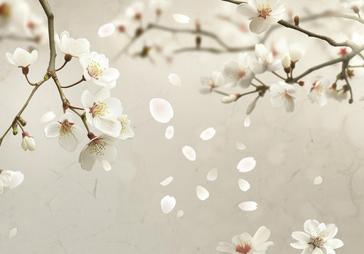 WonderMuralOur enchanting mural wallpaper features a design inspired by blooming cherry blossoms, where delicate petals and white flowers bloom against a brig...