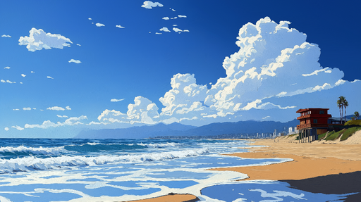 FluxGraphicEvoking escape and tranquility, this wallpaper illustrates an idyllic beach scene, with a vintage van and surfboards, ready for maritime adventure....