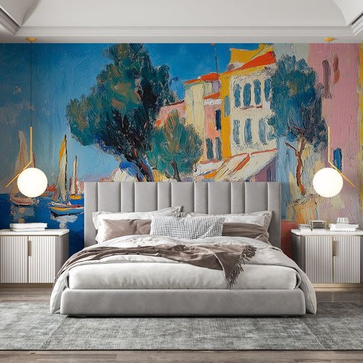 WonderMuralThis mural wallpaper highlights a vivid maritime landscape, depicting a charming seaside with a sailboat navigating calm waters. The vibrant colors...