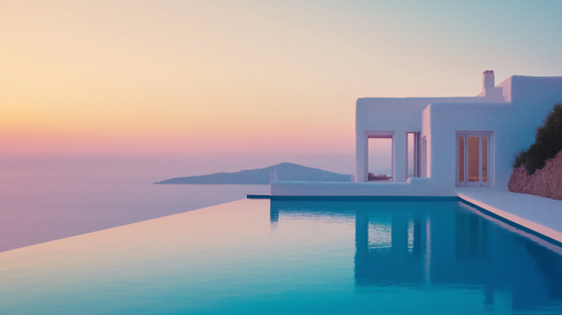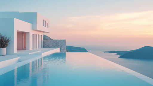 WonderMuralOur wallpaper evokes a soothing seascape, showcasing a modern villa with clean lines, flanked by an infinity pool that reflects the delicate colors...