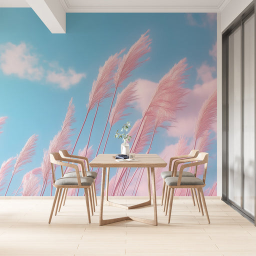 WonderMuralThis mural wallpaper evokes a calm sea with pink reflections, under a blue sky dotted with soft clouds. The pastel shades bring a sense of dreamine...