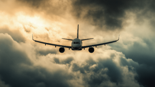 View full detailsMural Wallpaper plane | Plane crossing a cloudy sky with golden light