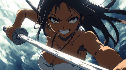 WonderMuralThis stunning mural wallpaper depicts a dynamic warrior brandishing her saber with determination under a stormy sky, adding a touch of drama to you...