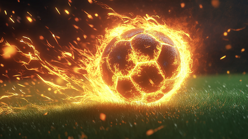 This captivating visual features a flaming soccer ball, symbolizing the passion and unwavering energy of the game. The vivid flames surrounding the...