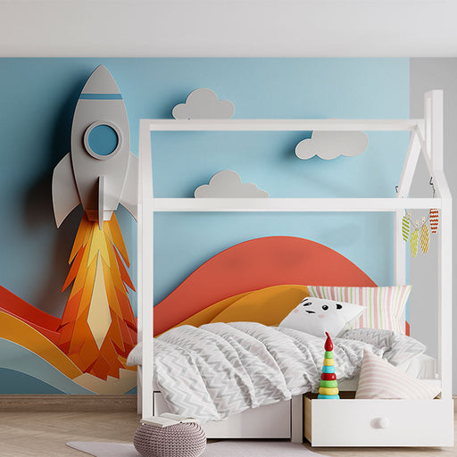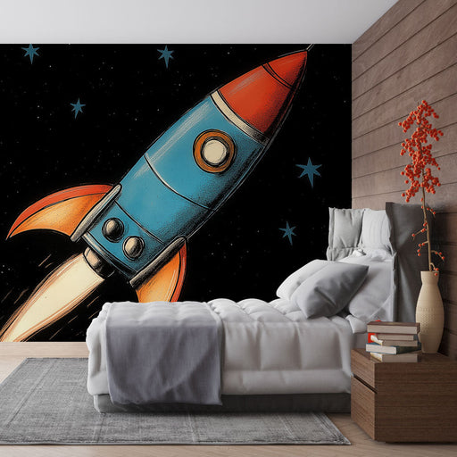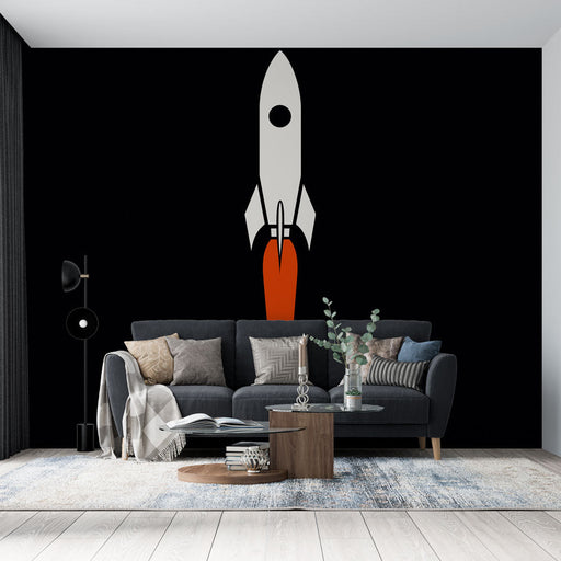 View full detailsSpace Mural Wallpaper | Rocket Takeoff in Cartoon Style