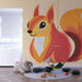 Our mural wallpaper features a stylized squirrel with bright shades of red, orange, and yellow that bring a touch of cheerfulness to your interior. This fun and modern design is perfect for children's rooms or playful spaces, adding a warm and welcoming atmosphere.