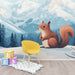 This enchanting mural wallpaper illustrates a delicately stylized squirrel standing on a layer of snow in the middle of winter, with a backdrop of majestic mountains covered in snow. The shades of blue and white create a peaceful and serene atmosphere, ideal for bringing a natural and charming touch to your space.