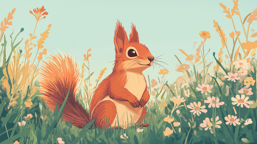 View full detailsMural Wallpaper happy-squirrel | Animated squirrel amidst flowers and grasses