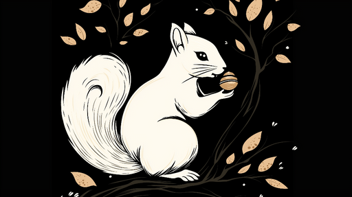 WonderMuralThis captivating mural wallpaper features a white squirrel in a charming pose, holding a golden nut, all set against a black background that highli...