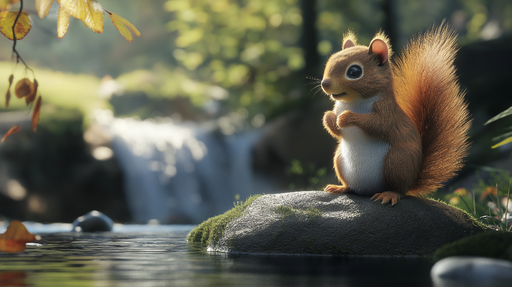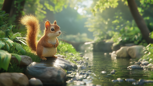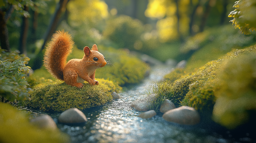 WonderMuralThis mural wallpaper features an adorable squirrel standing on a rock, surrounded by lush nature by a crystal-clear stream. The delicate details an...