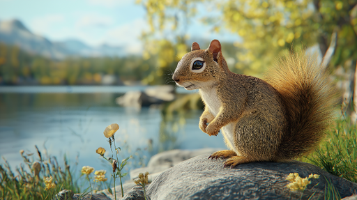 View full detailsMural Wallpaper squirrel | A playful squirrel by the water with lush nature in the background