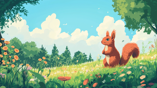 View full detailsMural Wallpaper Squirrel | An enchanting landscape with a cute squirrel in a sunny meadow