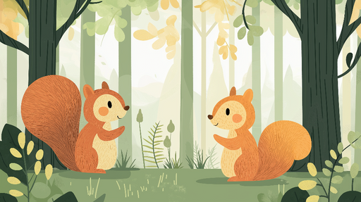 View full detailsMural Wallpaper squirrels | Playful scene with two squirrels in a stylized forest