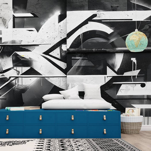 WonderMuralThis captivating mural wallpaper features a bold urban design in black and white, mixing geometric shapes and abstract lines. The texture gives an ...